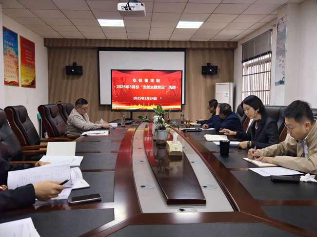 2025年3月24日上午,农机鉴定站党支部在会议室举行了3月份的“支部主题党日”活动,此次活动由农机鉴定站站长、支部书记纪华同志主持,鉴定站领导班子、中层干部、全体党员以及入党积极分子共同参与。
