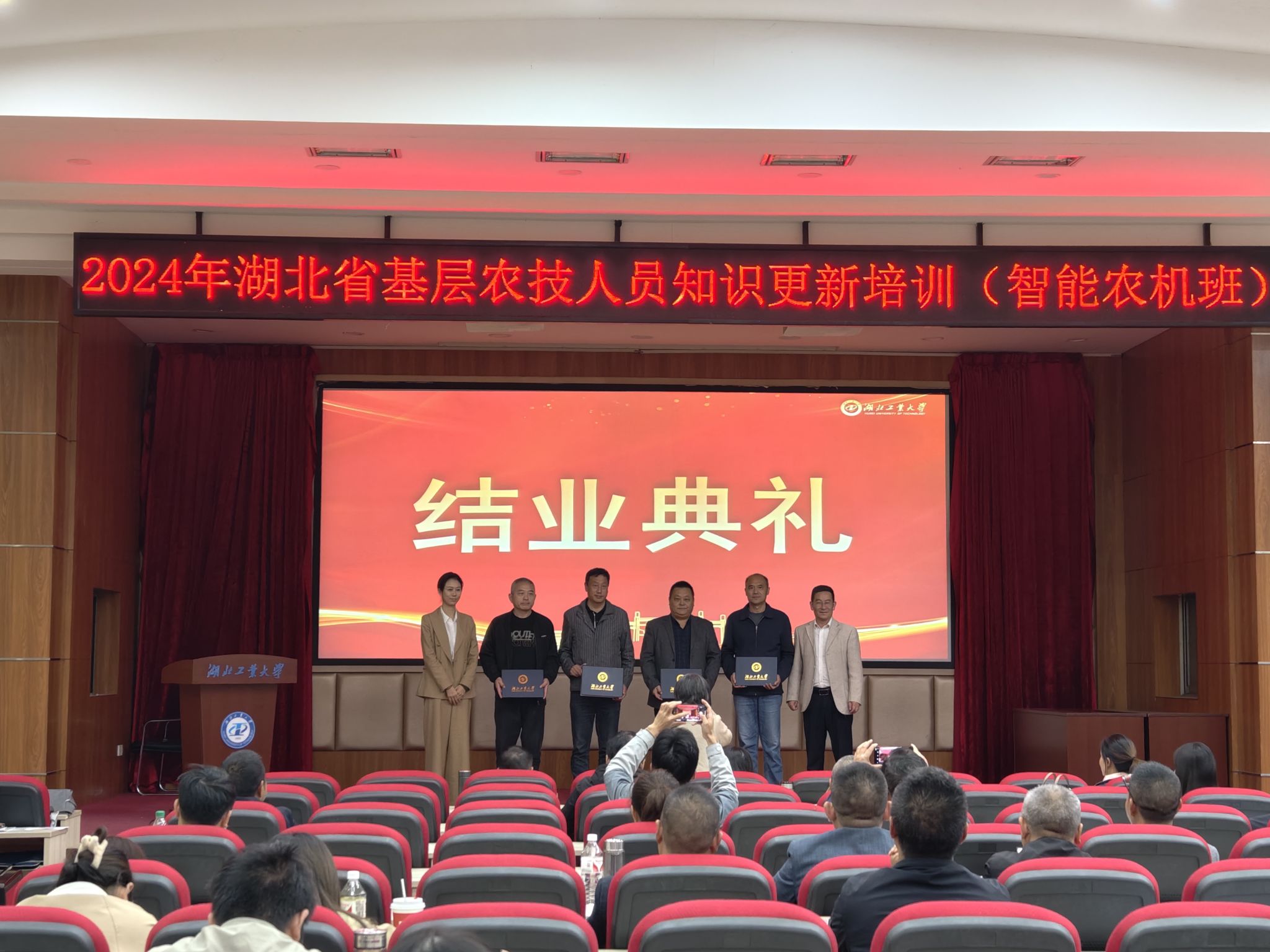 结业仪式上,湖北工业大学农机鉴定站站长纪华发表了讲话,她高度赞扬了学员们的学习热情,并寄语大家要将所学知识转化为推动当地农业转型升级的实际行动,成为智能农机推广应用的生力军。同时,为表彰在学习期间表现突出的学员,培训班还颁发了“优秀学员”证书,以资鼓励。