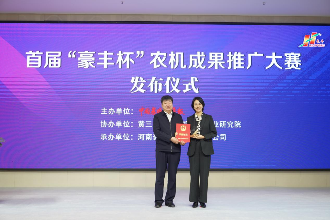 3月19日,由中国农机化导报主办的首届"豪丰杯"农机成果推广大赛成果发布仪式在河南许昌举行。中国工程院院士、大赛组委会主席陈学庚、中国农机化协会副会长刘恒新、中国农机流通协会会长范建华、农民日报社秘书长焦宏、中国农业工程学会常务副理事长朱明出席发布仪式,共同见证“产学研推用”协同创新成果。