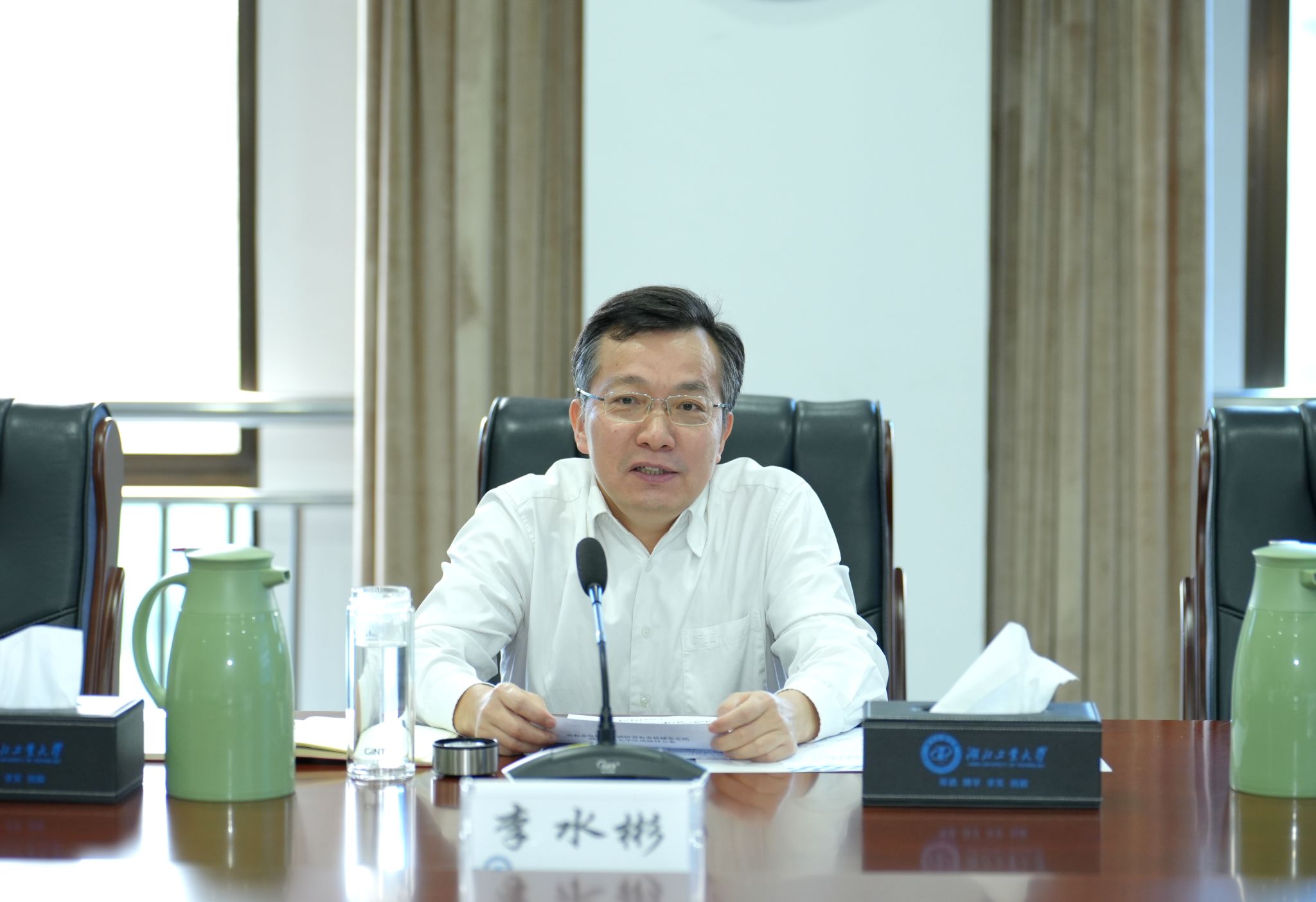 彭育园向李水彬详细介绍了学校在人才培养、服务地方经济社会发展、科学研究、国际交流与合作、文化传承与创新等方面的举措与成就。他指出,近年来学校持续加大农机学科投入,从人才招聘、研究生培养、领导班子建设、经费支持等方面推动农机工程研究设计院、农机鉴定站发展,着力夯实擦亮农机底色,做强做实农机特色,力争为湖北省农机事业发展扛旗争先。